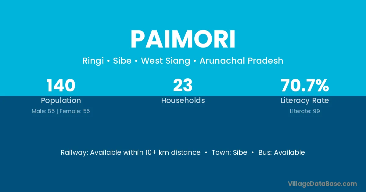 Paimori village has a total population of 140 people, of which 85 are males and 55 are females.
