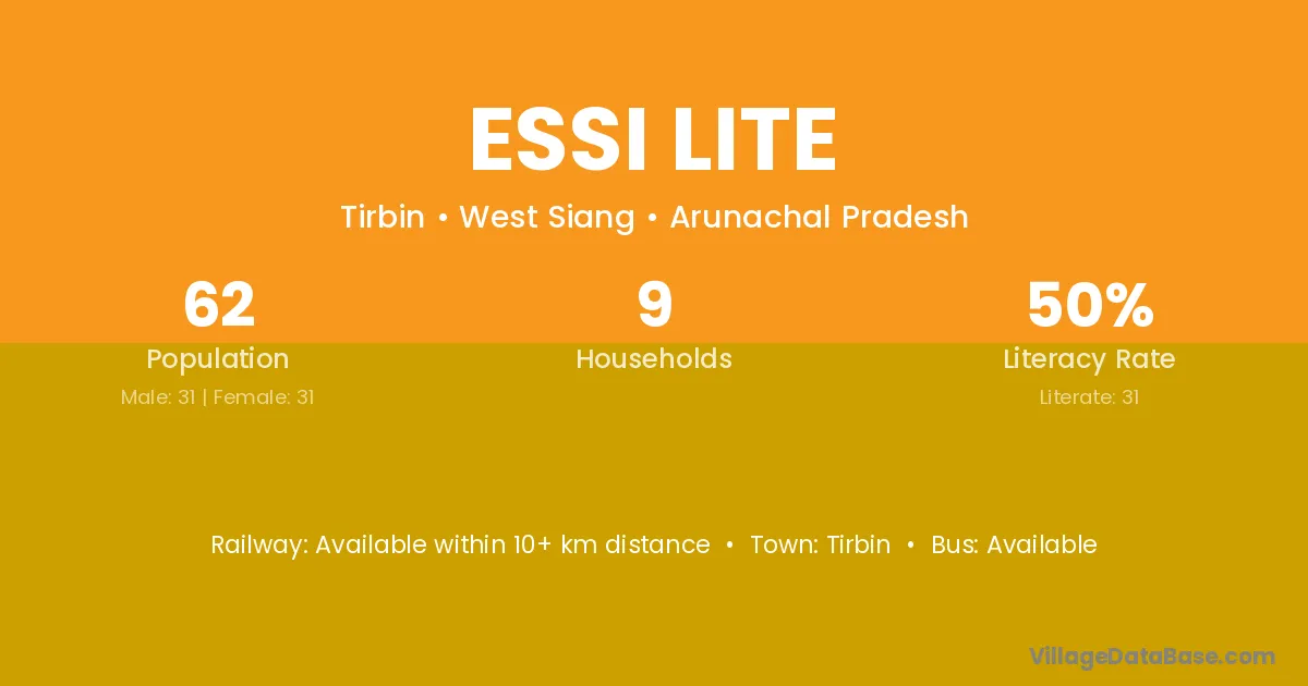 Essi Lite village has a total population of 62 people, of which 31 are males and 31 are females.