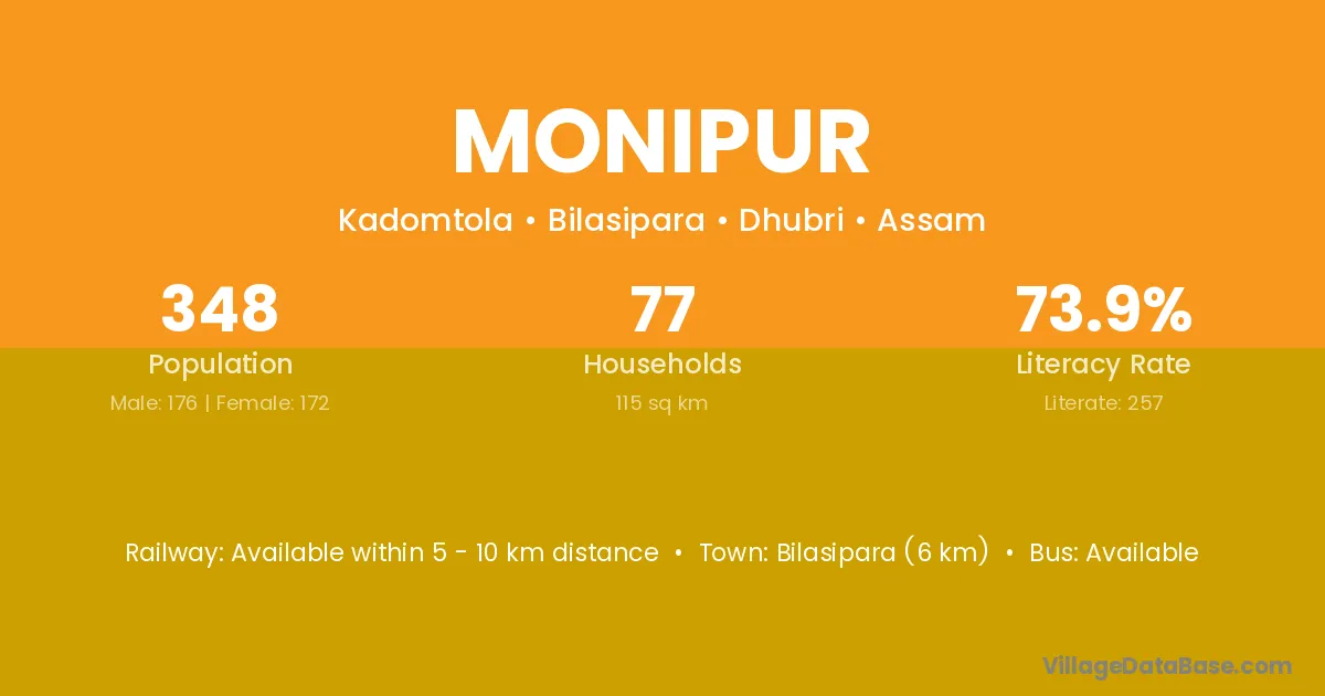 Nalbari (40 km) is the nearest town to Monipur village for major economic activities and is located approximately 40 km away.