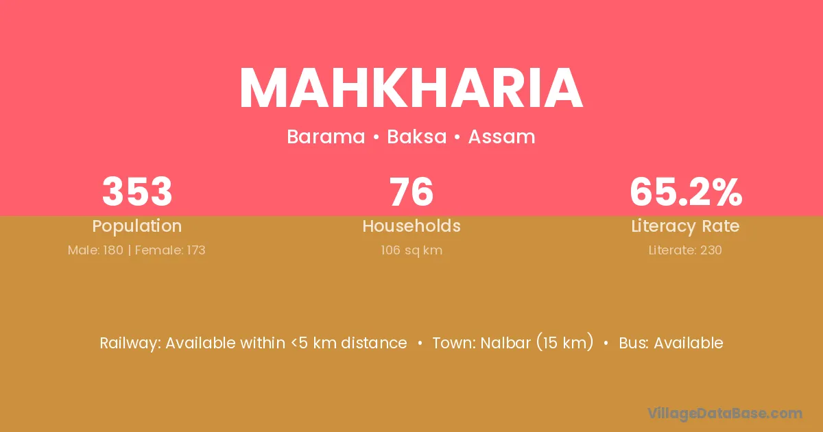 Nalbar (15 km) is the nearest town to Mahkharia village for major economic activities and is located approximately 15 km away.