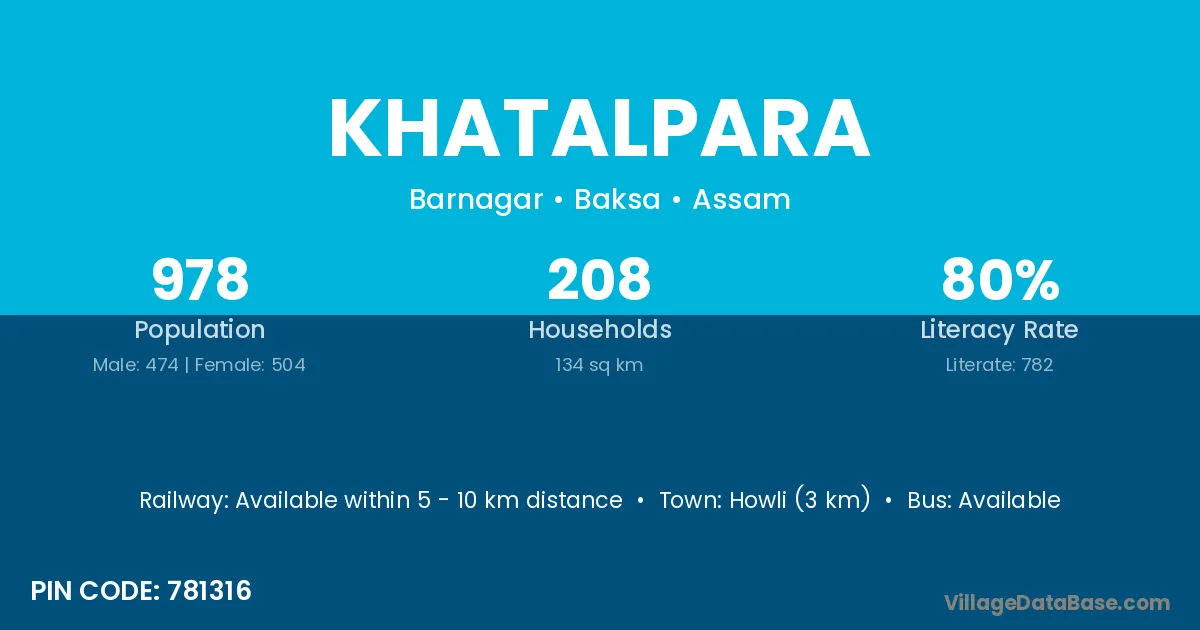 Khatalpara village has a total population of 978 people, of which 474 are males and 504 are females.