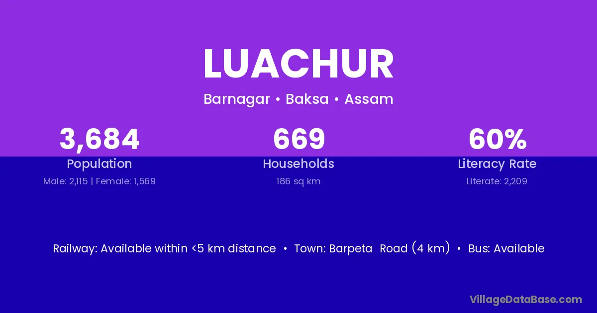 Barpeta Road (4 km) is the nearest town to Luachur village for major economic activities and is located approximately 4 km away.
