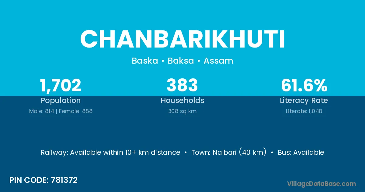 Nalbari (40 km) is the nearest town to Chanbarikhuti village for major economic activities and is located approximately 40 km away.