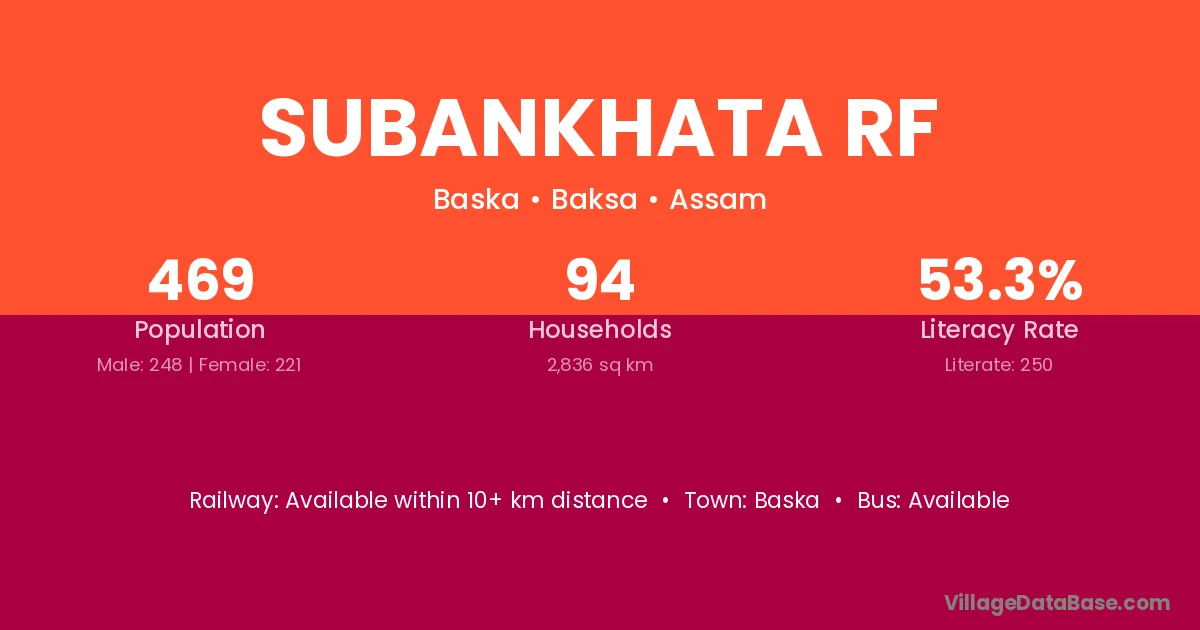 Subankhata Rf village has a total population of 469 people, of which 248 are males and 221 are females.