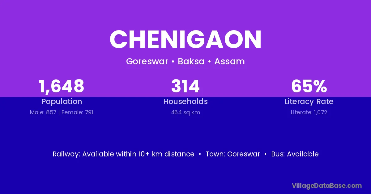 Goreswar is the nearest town to Chenigaon village for major economic activities