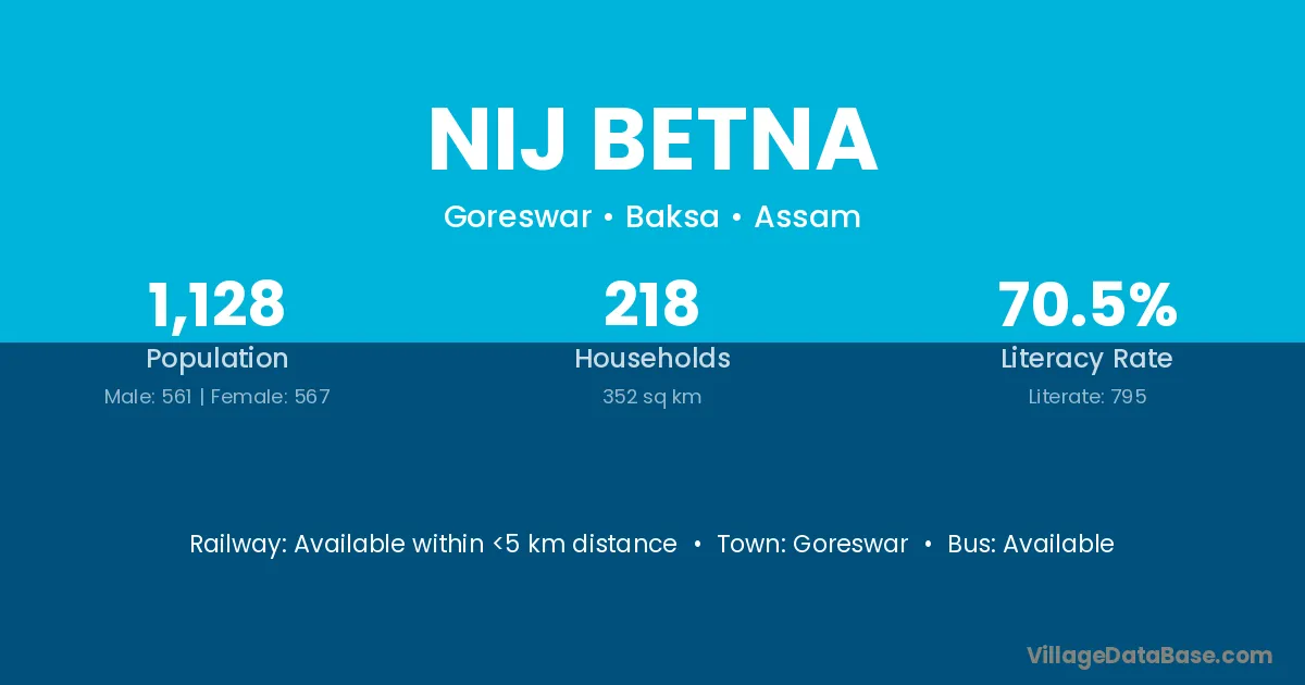 Nij Betna village is located in the Goreswar Subdivision of the Baksa district in Assam .
