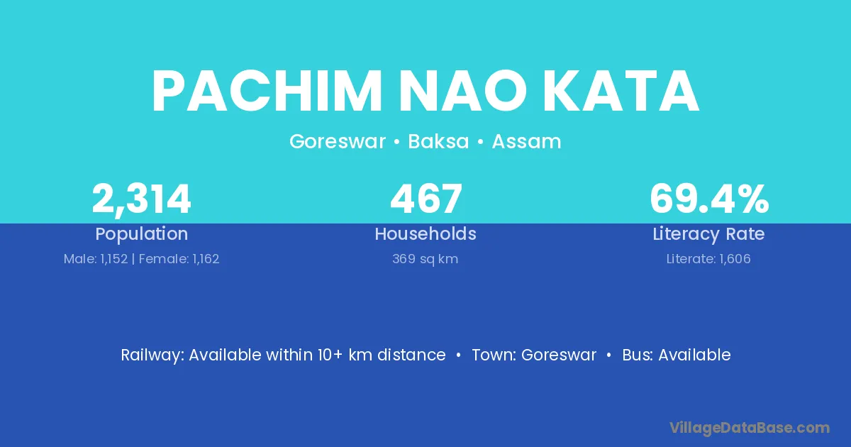 Pachim Nao Kata village is located in the Goreswar Subdivision of the Baksa district in Assam .