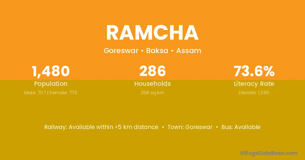 Ramcha village is located in the Goreswar Subdivision of the Baksa district in Assam .