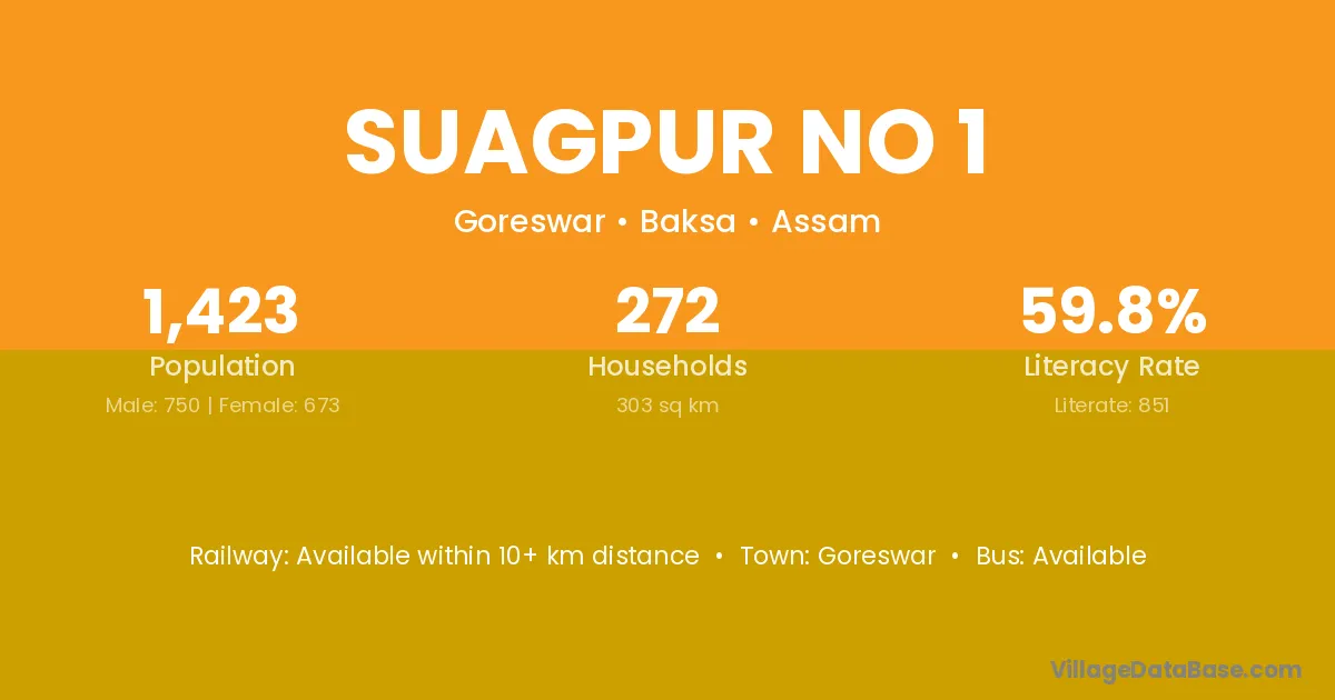 Suagpur No 1 village is located in the Goreswar Subdivision of the Baksa district in Assam .
