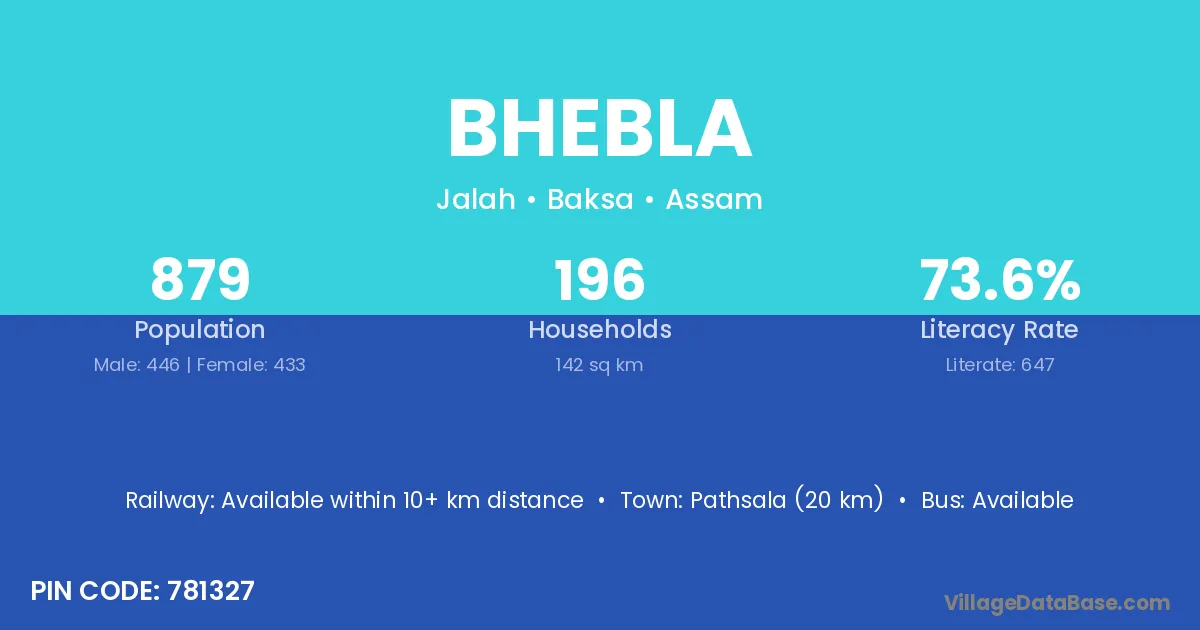Pathsala (20 km) is the nearest town to Bhebla village for major economic activities and is located approximately 20 km away.