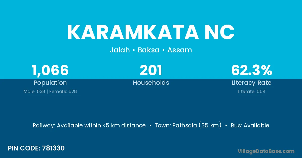 Pathsala (35 km) is the nearest town to Karamkata Nc village for major economic activities and is located approximately 35 km away.