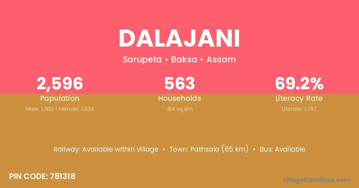 Dalajani village is located in the Sarupeta Subdivision of the Baksa district in Assam .