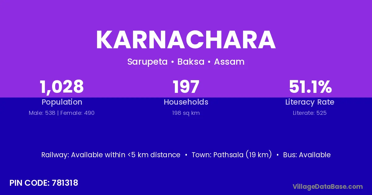 Pathsala (19 km) is the nearest town to Karnachara village for major economic activities and is located approximately 19 km away.