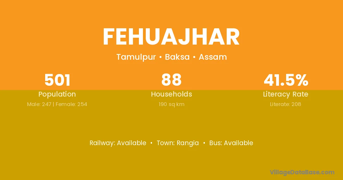Rangia is the nearest town to Fehuajhar village for major economic activities
