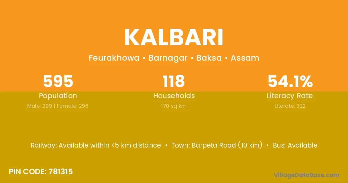 Rangia (28 km) is the nearest town to Kalbari village for major economic activities and is located approximately 28 km away.