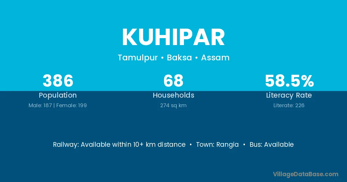 Rangia is the nearest town to Kuhipar village for major economic activities