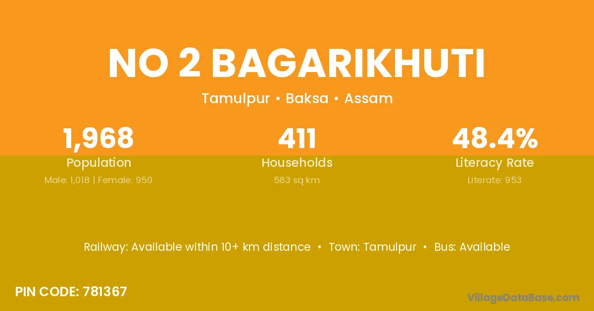 Tamulpur is the nearest town to No 2 Bagarikhuti village for major economic activities