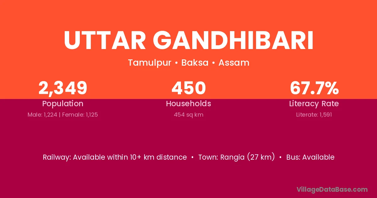 Rangia (27 km) is the nearest town to Uttar Gandhibari village for major economic activities and is located approximately 27 km away.