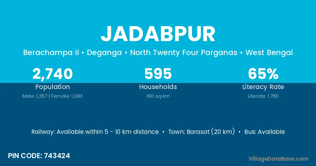 Barpeta (15 km) is the nearest town to Jadabpur village for major economic activities and is located approximately 15 km away.