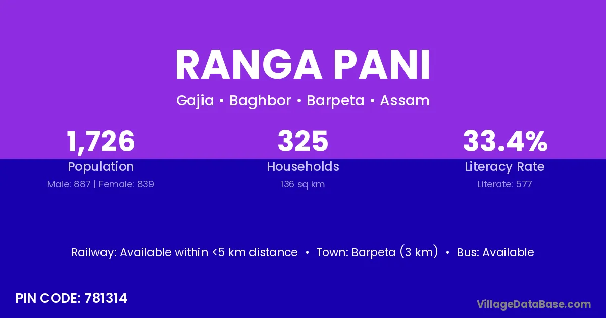 According to Census 2011 information, the village code of Ranga Pani village is 781314.