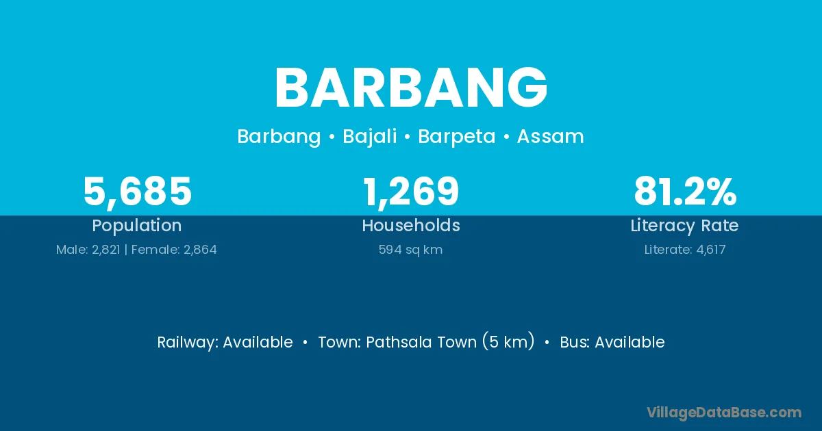 Pathsala Town (5 km) is the nearest town to Barbang village for major economic activities and is located approximately 5 km away.