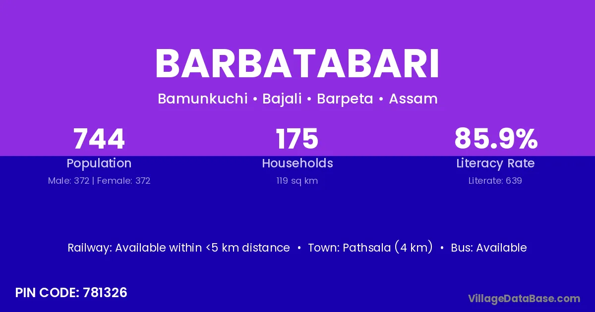 Pathsala (4 km) is the nearest town to Barbatabari village for major economic activities and is located approximately 4 km away.