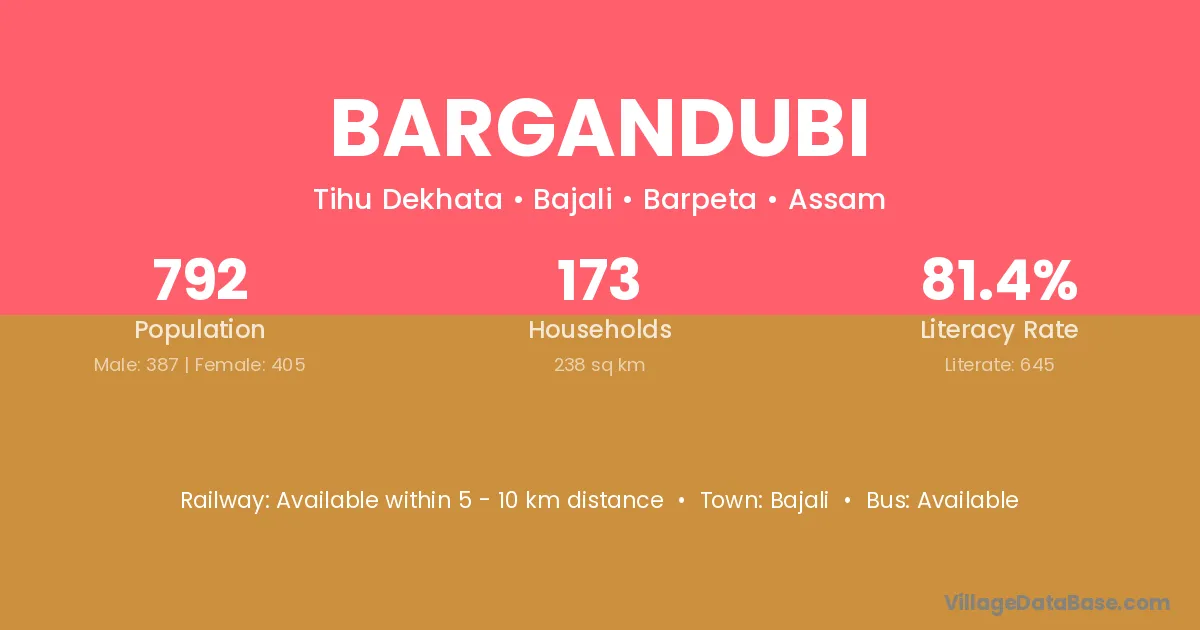 Bargandubi village has a total population of 792 people, of which 387 are males and 405 are females.