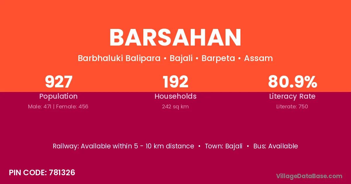 Bajali is the nearest town to Barsahan village for major economic activities