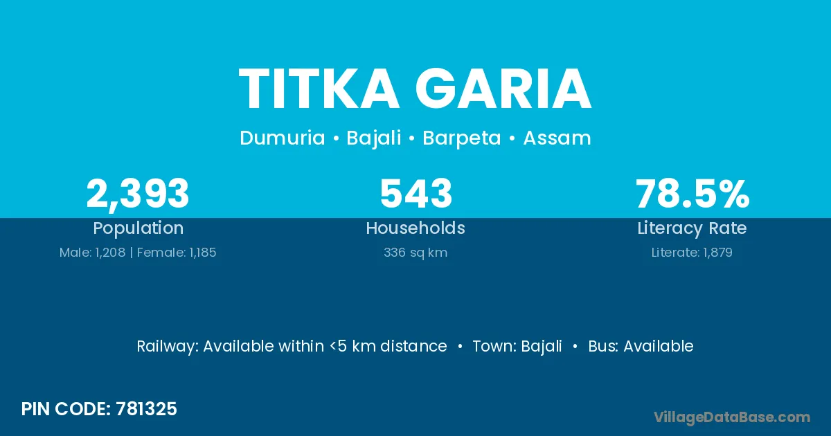 Bajali is the nearest town to Titka Garia village for major economic activities