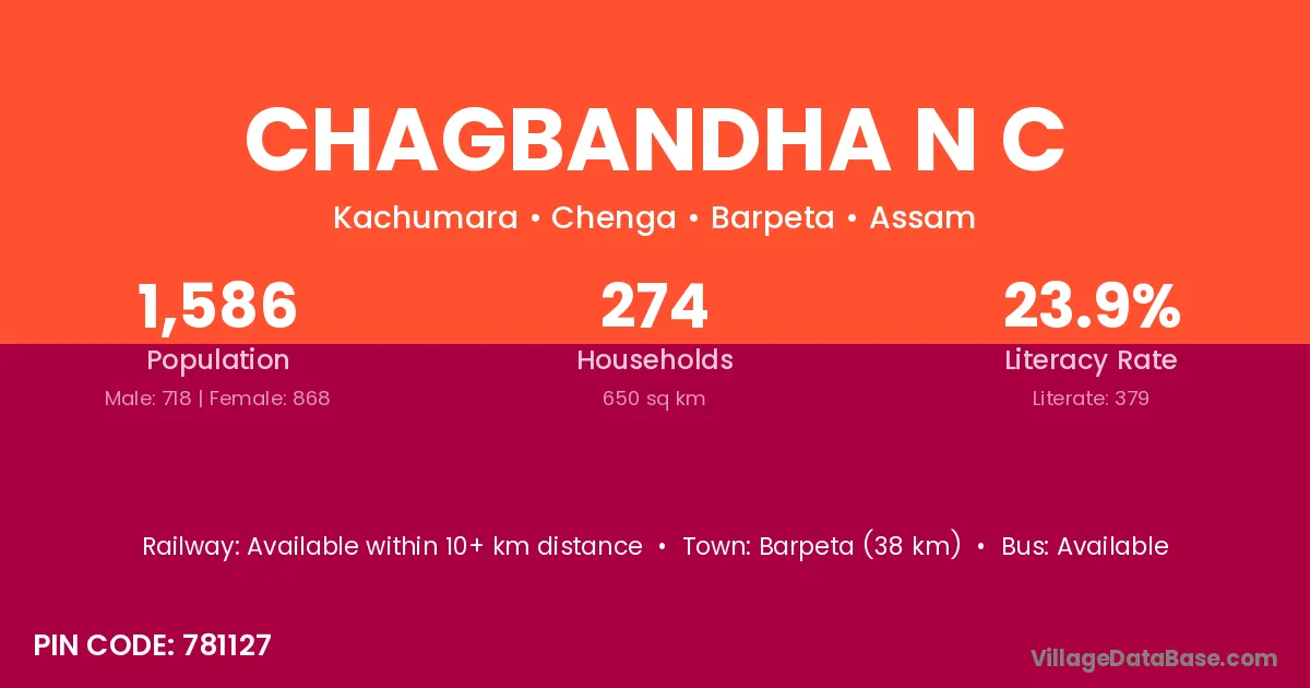 Barpeta (38 km) is the nearest town to Chagbandha N C village for major economic activities and is located approximately 38 km away.