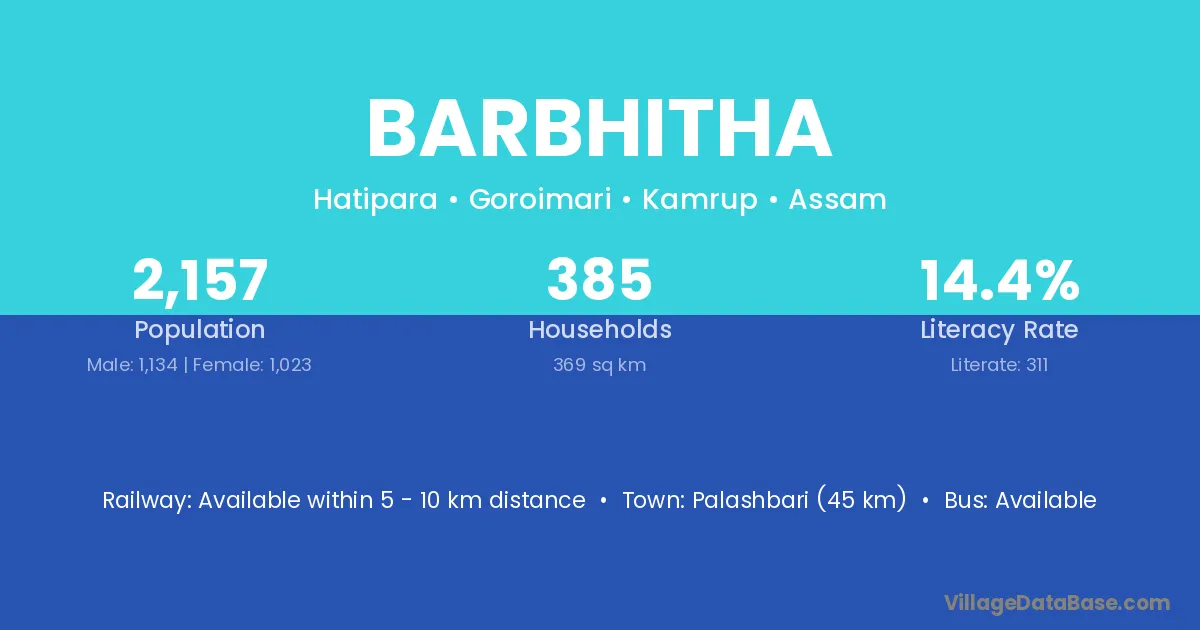 Abhayapuri (20 km) is the nearest town to Barbhitha village for major economic activities and is located approximately 20 km away.