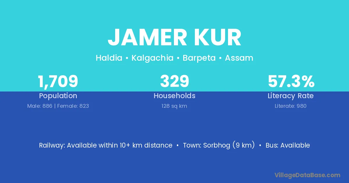 Sorbhog (9 km) is the nearest town to Jamer Kur village for major economic activities and is located approximately 9 km away.