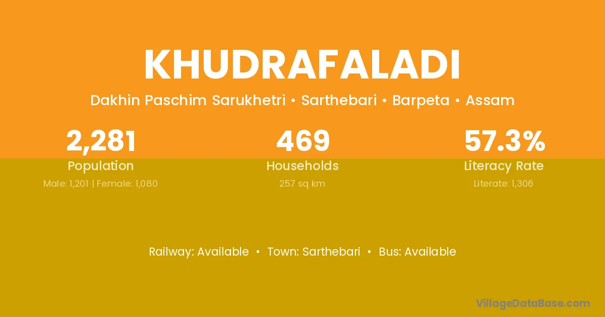 Sarthebari is the nearest town to Khudrafaladi village for major economic activities