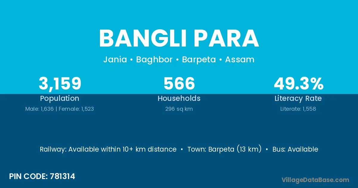 Pathsala (10 km) is the nearest town to Bangli Para village for major economic activities and is located approximately 10 km away.