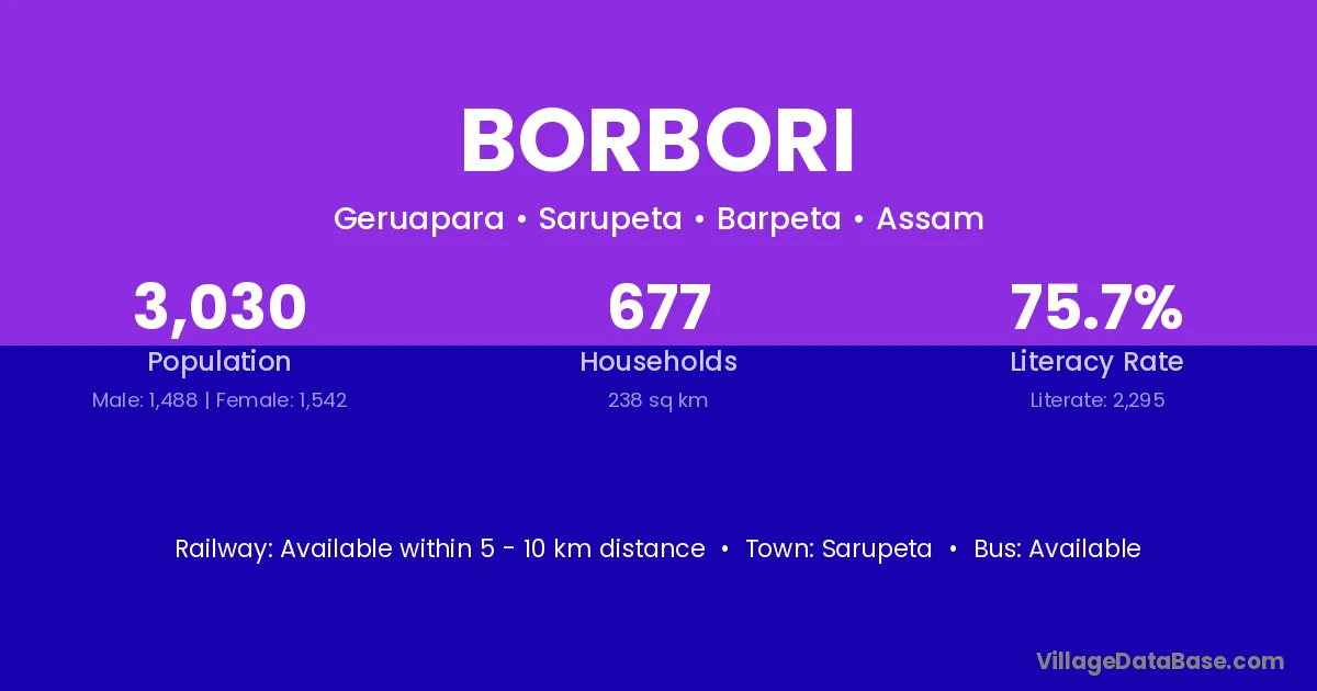 There are approximately 677 households in Borbori village.