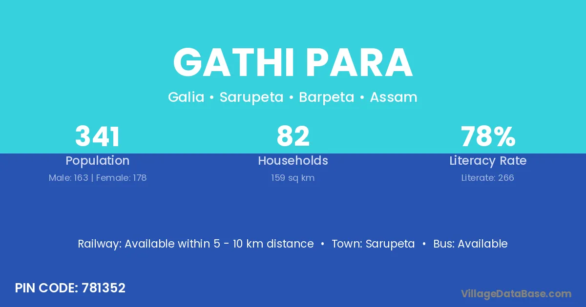 Gathi Para village has a total population of 341 people, of which 163 are males and 178 are females.