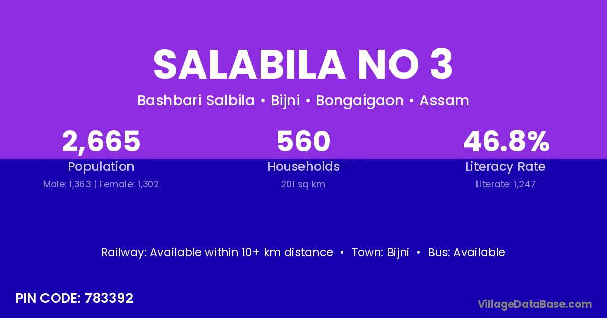 Bijni is the nearest town to Salabila No 3 village for major economic activities