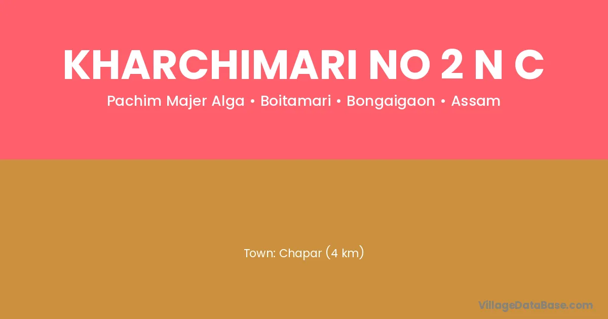 Chapar (4 km) is the nearest town to Kharchimari No 2 N C village for major economic activities and is located approximately 4 km away.