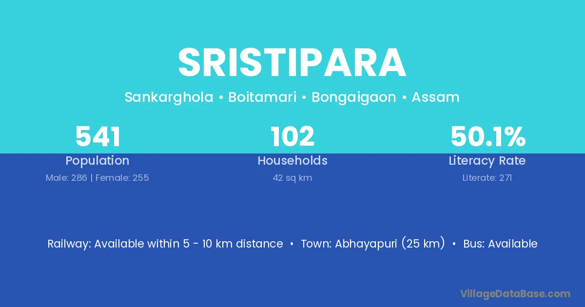Abhayapuri (25 km) is the nearest town to Sristipara village for major economic activities and is located approximately 25 km away.