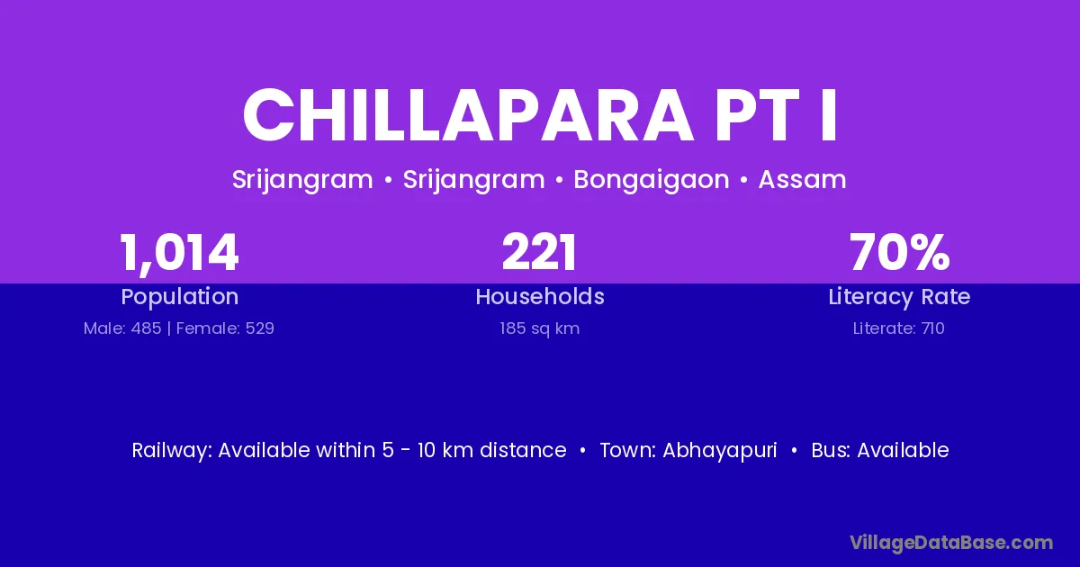 Abhayapuri is the nearest town to Chillapara Pt I village for major economic activities