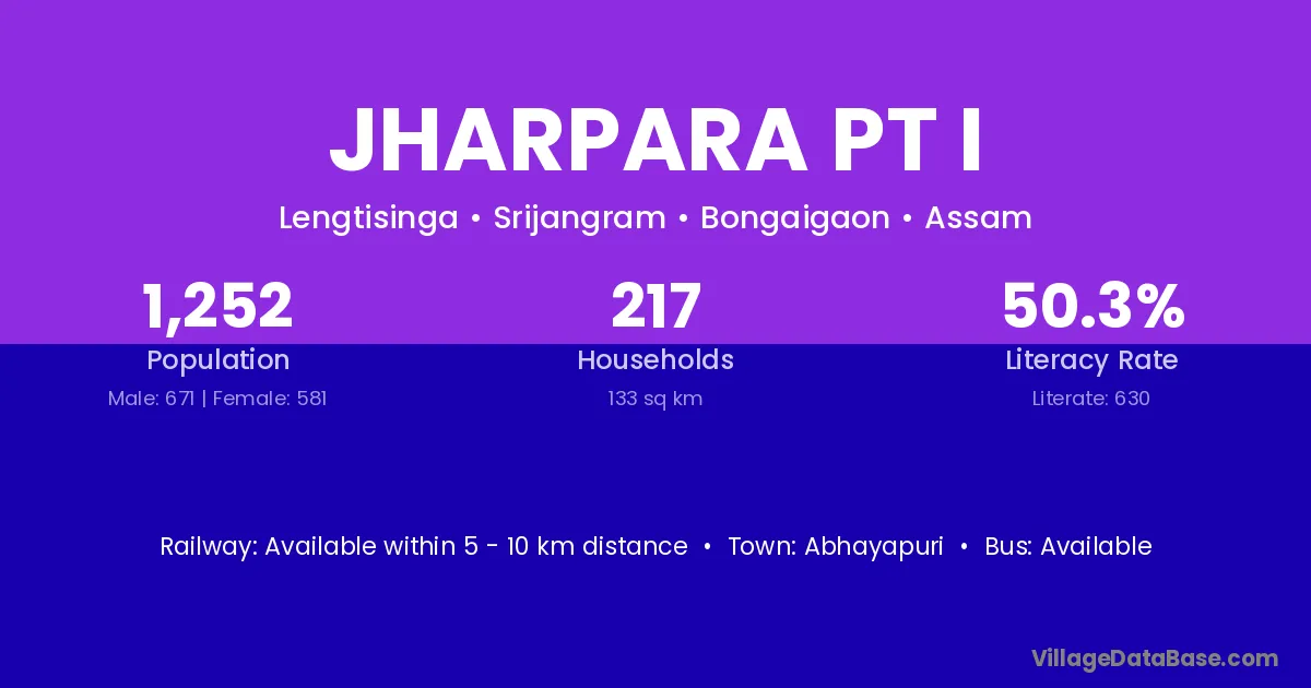 Abhayapuri is the nearest town to Jharpara Pt I village for major economic activities