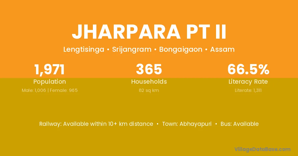 Abhayapuri is the nearest town to Jharpara Pt Ii village for major economic activities