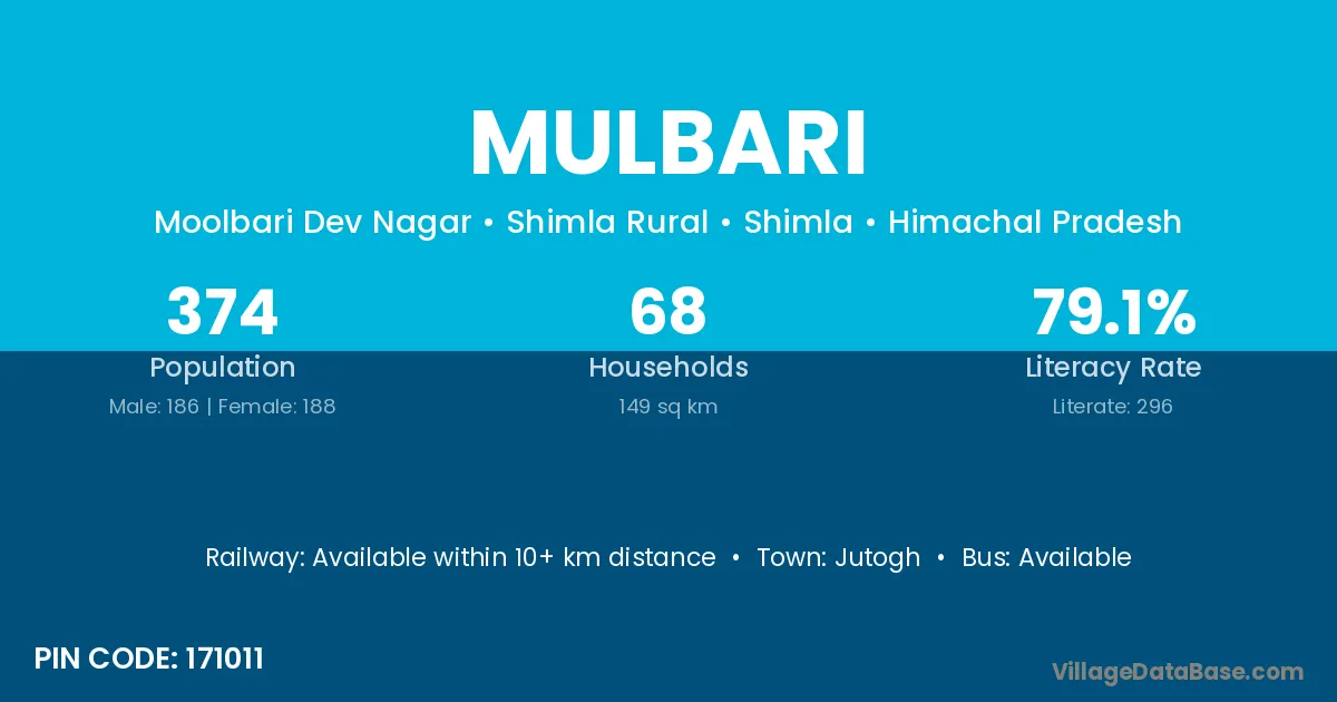 Mulbari village has a total population of 1,281 people, of which 667 are males and 614 are females.