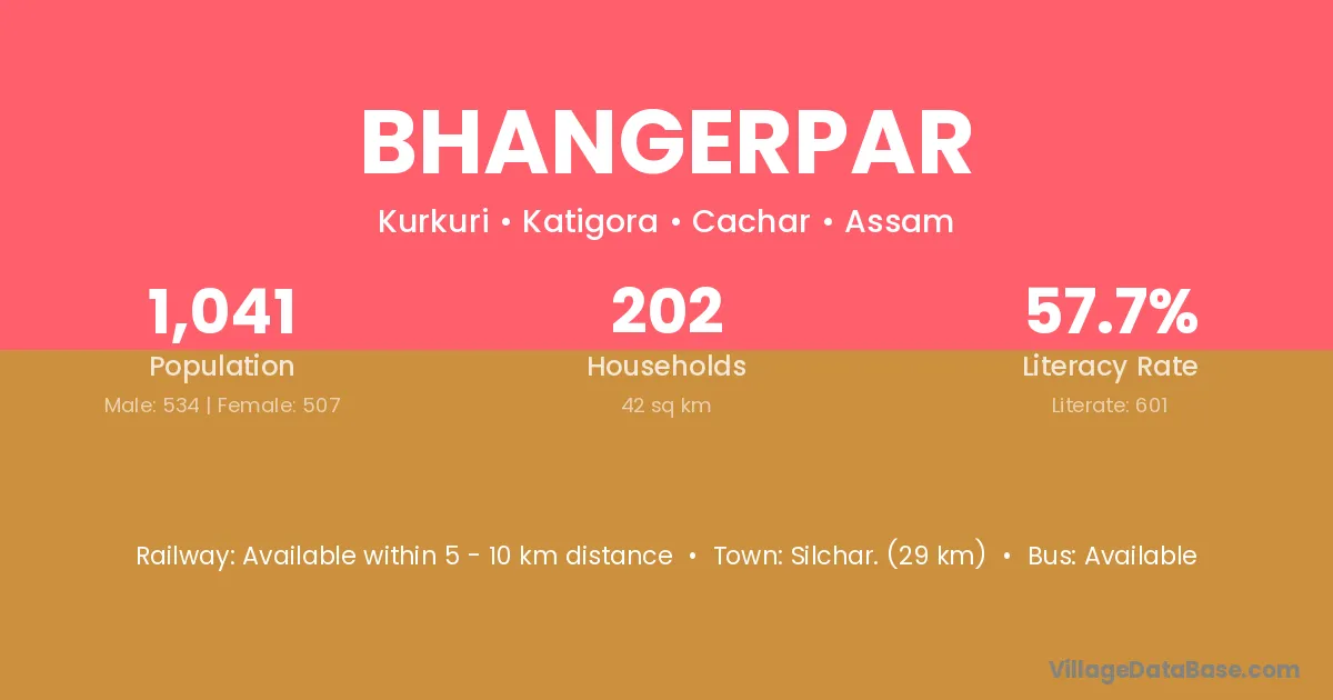 Silchar. (29 km) is the nearest town to Bhangerpar village for major economic activities and is located approximately 29 km away.