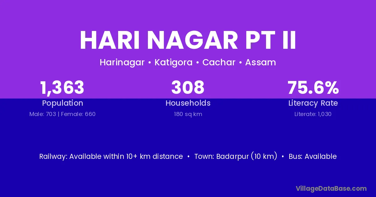 Hari Nagar Pt Ii village has a total population of 1,363 people, of which 703 are males and 660 are females.