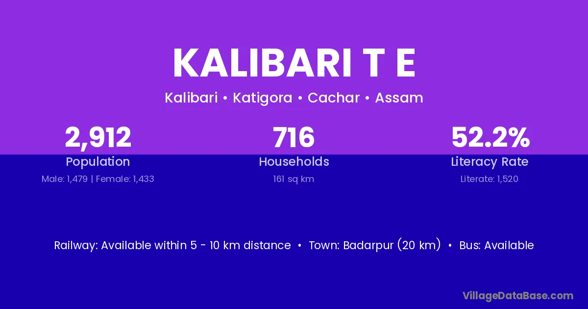 Badarpur (20 km) is the nearest town to Kalibari T E village for major economic activities and is located approximately 20 km away.