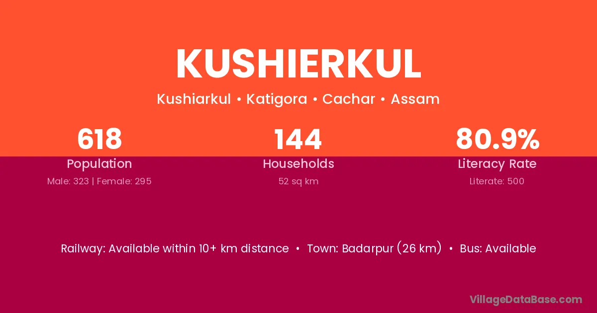 Badarpur (26 km) is the nearest town to Kushierkul village for major economic activities and is located approximately 26 km away.