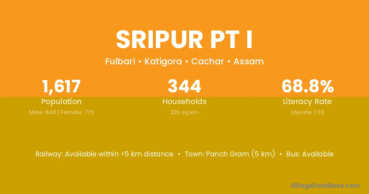 Panch Gram (5 km) is the nearest town to Sripur Pt I village for major economic activities and is located approximately 5 km away.