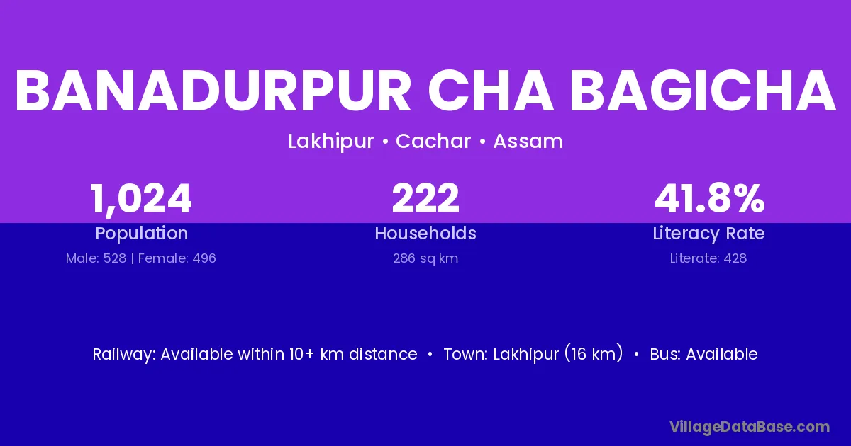 Banadurpur Cha Bagicha village has a total population of 1,024 people, of which 528 are males and 496 are females.