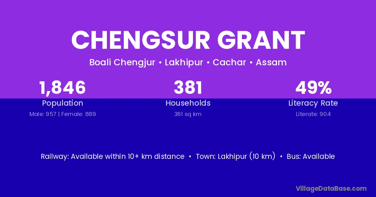 Lakhipur (10 km) is the nearest town to Chengsur Grant village for major economic activities and is located approximately 10 km away.